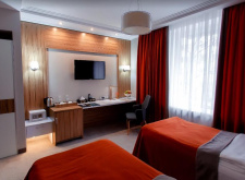 Просторный, в современном стиле номер, (от 25 м²), светлый и уютный номер с высоким потолком (более 3-х м), с балконом или без балкона, рассчитанный как для одноместного, так и для двухместного размещения. Все окна открываются, с видом как на горы, и на город. Удобная кровать с flexy матрацем по итальянской технологии, эргономичный ковролин, авторские художественные картины и приятное цветовое оформление номера, дополнительная мебель и большая диагональ плазменного TV, придают более комфортное проживание.