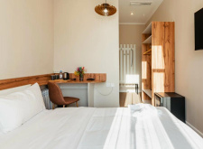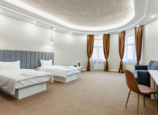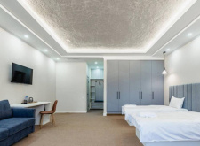 Полулюкс номер с одной двуспальной кроватью, либо с двумя односпальными кроватями отличается стильным дизайном и уютной атмосферой. В номере есть письменная зона, диван, шкаф для хранения вещей, и мини-холодильник. Также предоставляются все необходимые удобства: Wi-Fi, кондиционер, телевизор и туалетные принадлежности для вашего комфортного отдыха.